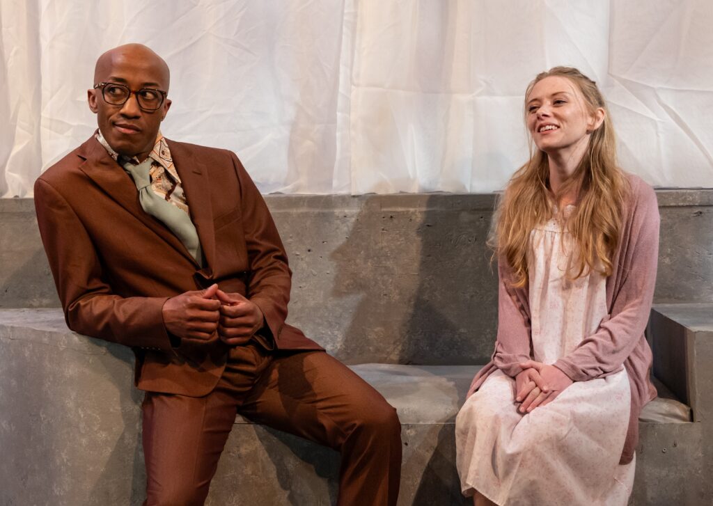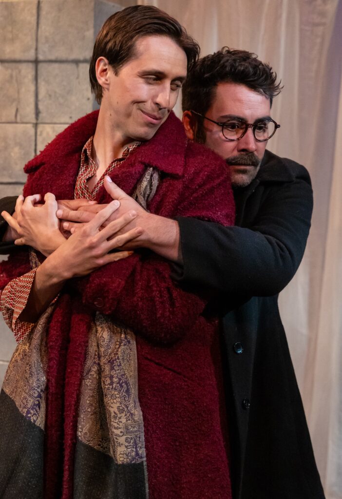 The physical production is anchored by Brendan T. Cochran’s smart, utilitarian set—an adaptable framework that allows the story to breathe while keeping the focus on the actors and the emotional stakes. Jasper Day’s costumes reflect each character’s inner world with subtle clarity, providing period detail without feeling overdone. Emily Maddox’s lighting shapes the play’s shifting realities with precision, guiding us through moments of intimacy, rupture, and revelation. And Luke Rahmsdorff-Terry’s sound design adds an atmospheric undercurrent that supports the production’s tonal shifts. Together, these elements create a cohesive environment that enhances Kushner’s world without overpowering it.