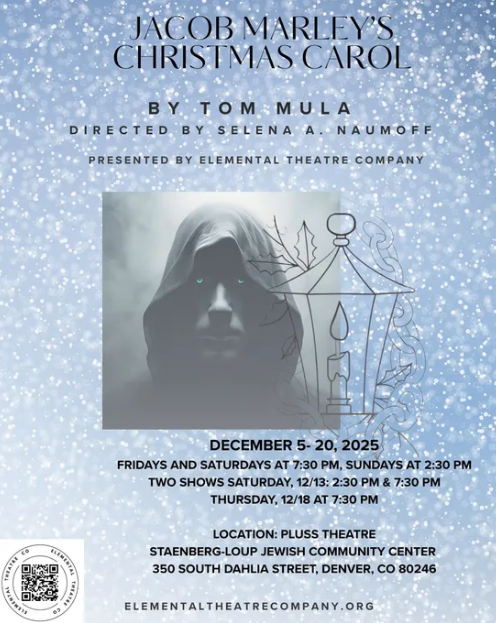 Elemental Theatre Company’s production of Jacob Marley’s Christmas Carol by Tom Mula, directed by Selena A. Naumoff, marks a significant milestone for Denver’s theatre scene. Performed at the Pluss Theatre in the Mizel Arts and Cultural Complex, this show signals the arrival of a new company eager to enrich the city’s lively performing arts community.