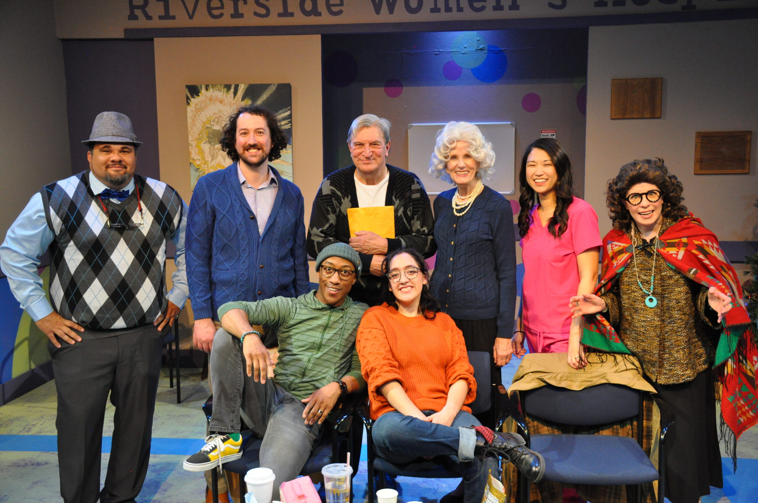 The story focuses on Kevin (Johnathan Underwood) and Allie (Chrys Duran), whose plan for a peaceful Christmas while waiting for their baby through adoption from Lizzie (Chrys Duran) and Leonard (Johnathan Underwood) quickly turns into pandemonium. Payne fills the stage with a revolving door of relatives and friends: Kevin’s parents arrive with new partners and old issues, Allie’s family bursts in with competitive energy, and neighbors and friends add their own quirks to the mix. The eight actors play a total of twenty-two characters, and the fun comes not just from the fast pace of entrances and exits but also from how identities overlap, clash, and sometimes reveal unexpected tenderness beneath the chaos.