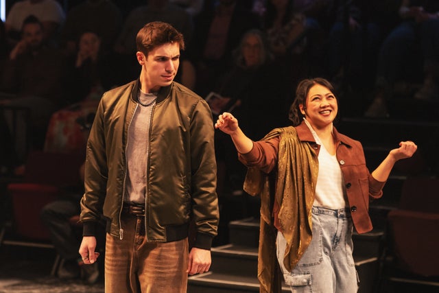 Henry Hawes as Romeo, and Jenna Moll Reyes as Benvolio