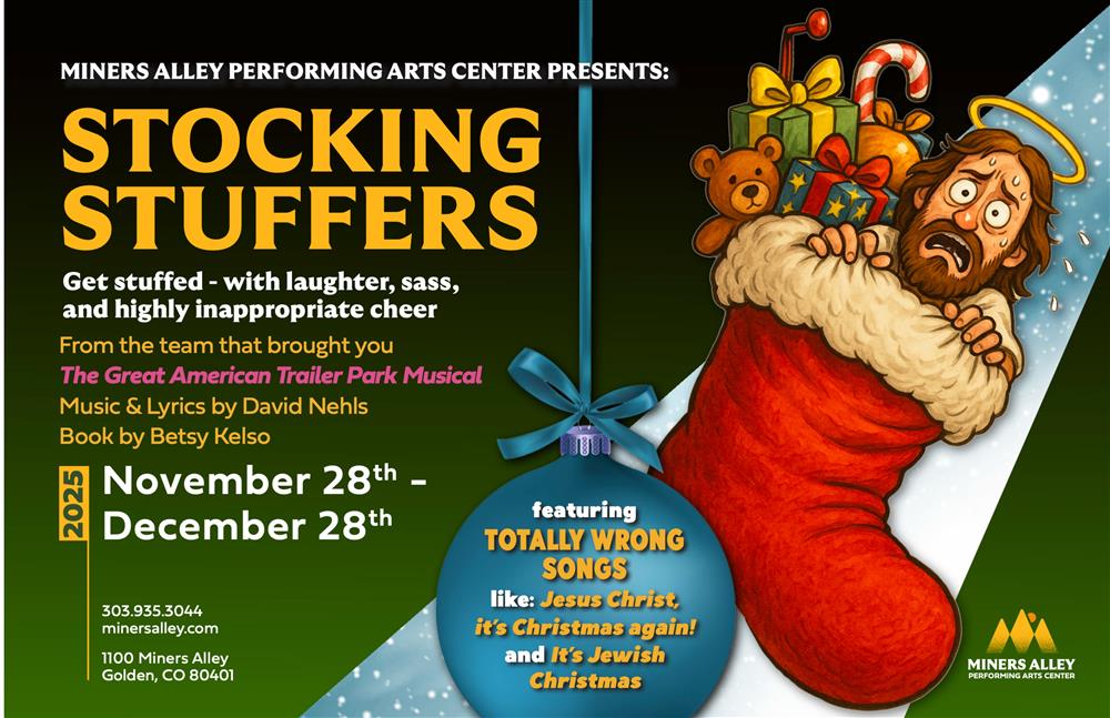 Forget the fruitcake—this year’s must-have holiday treat is Stocking Stuffers, the musical premiere playing at Miners Alley Performing Arts Center in Golden. Guided by Associate Artistic Director Warren Sherrill’s spirited direction, the production features music and lyrics by Denver’s incomparable David Nehls and a hilariously crafted book by Betsy Kelso, promising audiences a lively mix of humor and heart. Nehls and Kelso are the creators of the hit musical The Great American Trailer Park Musical, which enjoyed a successful run off-Broadway and at Miners Alley several years ago.