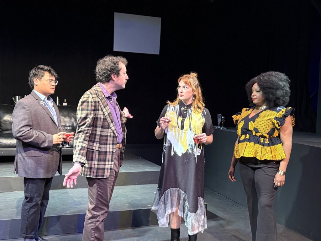 White follows Gus (Andrew Catterall), a white artist who feels shut out of the museum world, as he turns to Tanner (Timmy Pamintuan)—his partner in ways that are both romantic and creatively entangled—to help him respond after Jane (Maya Ferrario), the new curator, rejects his work for lacking “diversity.” Enter Vanessa (Kenya Mahogany Fashaw), an actor Gus hires to embody a bold new persona named Balkonaé Townsend, a creation that quickly grows beyond anyone’s control. As Jane, Gus, Vanessa, and Tanner collide over ambition, identity, and the politics of visibility, the play drives them toward an ending that unsettles every assumption they’ve been clinging to, without giving away exactly how Ijames lets the final blow land.